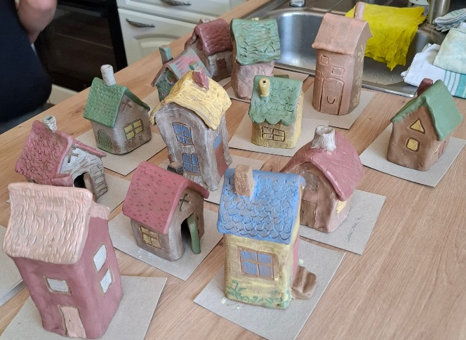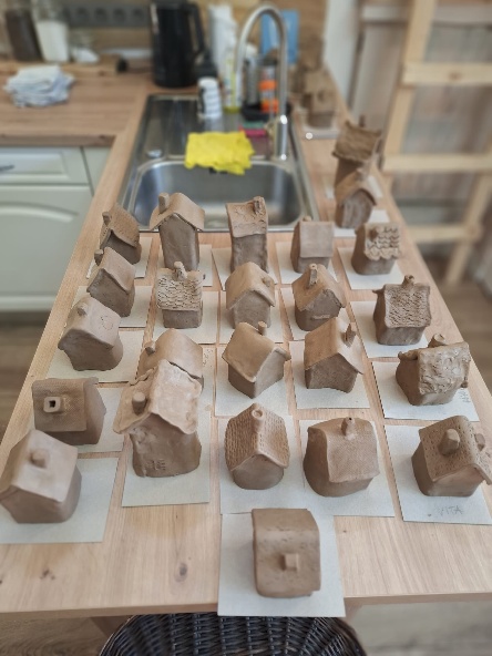 Seminārā piedzīvojām dabas baudījumu un atkalredzēšanās prieku ar kolēģiem, dziļāk iepazinām un izdzīvojām mājas simbolu, gan noklausoties kolēģes Sandras Ķikustes stāstījumu par to, gan arī keramiķes Ievas Meijeres vadībā meistarklasē veidojot paši savas mājas simbola atveidojumus mālā. Mājiņas vēl joprojām ir savā nesteidzīgajā tapšanas procesā, tiek ceptas māla krāsnī, un rudenī būs gatavas satikt savus autorus, un viņu klientus, kā arī iesaistīties smilšu spēles dziedinošajā procesā, radot, kopjot, izbaudot, uzturot, atjaunojot, sargājot un rūpējoties par MĀJU IZJŪTU. Uz atkalredzēšanos rudens seminārā!
